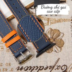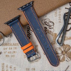 Dây Apple Watch bằng da bê Epsom Pháp cao cấp màu xanh navy chỉ cam