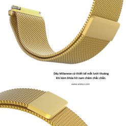 Kết hợp với kiểu khóa hít nam châm tiện dụng và linh hoạt điều chỉnh các vị trí khóa phù hợp với cổ tay người đeo. Dây Milanese bằng thép màu vàng cho đồng hồ Samsung Watch có thiết kế và vẻ đẹp cũng như chất liệu tốt phù hợp với nhiều ngữ cảnh sử dụng khác nhau.