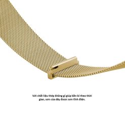 Dây Milanese bằng thép màu vàng làm từ thép không gỉ với cấu trúc dạng mắt xích đan vào nhau rất độc đáo, mang lại vẻ đẹp thời trang, sang trọng và cảm giác thoải mái khi đeo.