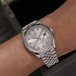 Ô lịch ngày được đặt gọn gàng tại vị trí 3 giờ, tích hợp kính lúp phóng đại trên mặt kính Sapphire. Chi tiết này không chỉ tăng tính tiện dụng mà còn là điểm nhấn đậm chất doanh nhân. Tổng thể mặt số được bảo vệ bởi mặt kính Sapphire chống trầy xước vượt trội, giữ cho chiếc đồng hồ luôn sáng bóng như mới sau nhiều năm sử dụng.