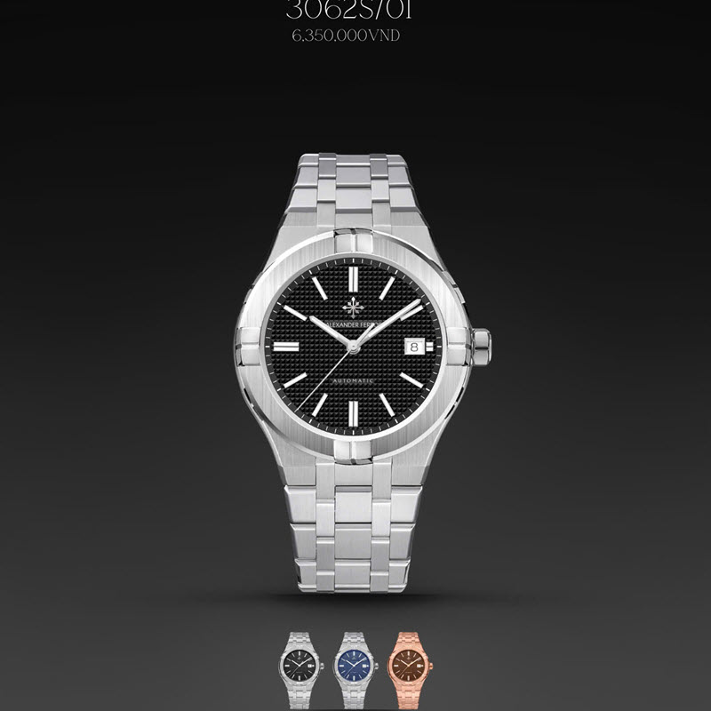 Hãy là người đầu tiên nhận xét “Đồng Hồ Nam Alexander Ferros 3062S/01 Automatic Đen Caro Dây Thép”