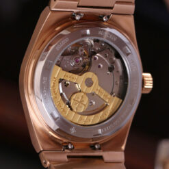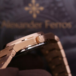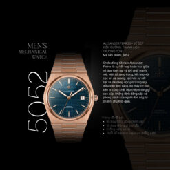 Alexander Ferros là thương hiệu nổi bật với triết lý thiết kế kết hợp hài hòa vẻ đẹp cổ điển và xu hướng đương đại. Ở phiên bản 5052R/05, điều đó được thể hiện qua từng đường nét. Tổng thể sản phẩm mang dáng vẻ mạnh mẽ, hiện đại nhờ cấu trúc vỏ liền dây và các mảng khối sắc nét. Tông vàng hồng được phủ PVD trên thép không gỉ tạo nên sắc độ ấm áp và sang trọng, phù hợp với nhiều phong cách ăn mặc của phái mạnh.