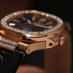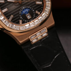 Với tông màu đen huyền bí kết hợp cùng vỏ vàng hồng sang trọng, đồng hồ nam Alexander Ferros 6111R-01 mang đến cảm giác vừa mạnh mẽ vừa tinh tế. Vành bezel đính đá baguette cao cấp được sắp xếp đối xứng, phản chiếu ánh sáng rực rỡ mỗi khi xoay cổ tay, một chi tiết tinh xảo giúp chiếc đồng hồ trở thành món trang sức đẳng cấp cho phái mạnh.