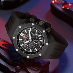 Được trang bị máy Pin (Quartz), giúp đồng hồ duy trì độ chính xác cao trong việc hiển thị thời gian. Vỏ đồng hồ được làm từ hợp kim cao cấp, tạo nên độ bền và sang trọng cho sản phẩm. Dây đeo bằng silicon cao cấp mang lại sự thoải mái và bền bỉ cho người đeo.