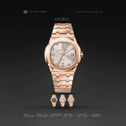 Cọc số đính đá lấp lánh tạo nên ánh sáng nhẹ nhàng, tăng chiều sâu thị giác và mang lại cảm giác cao cấp khi nhìn gần. Ba kim đồng hồ được thiết kế thanh mảnh giúp mặt số trở nên nữ tính hơn. Ô lịch ngày nằm tại vị trí 3 giờ gọn gàng, dễ quan sát và rất hữu ích trong cuộc sống hằng ngày.