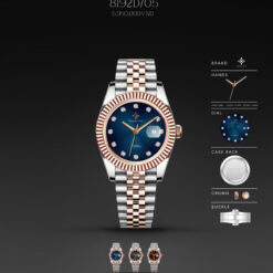 Điểm nhấn nổi bật nhất là vành khía (Fluted Bezel) đặc trưng. Chiếc vành này được mạ PVD vàng hồng tinh xảo. Vành khía không chỉ có tác dụng bảo vệ mặt kính. Nó còn là biểu tượng kinh điển của sự sang trọng. Sự kết hợp giữa thép trắng và vàng hồng tạo nên một tổng thể hài hòa và cuốn hút.