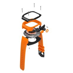 Dây đeo được làm từ cao su silicone chất lượng cao, mặt, chốt và khóa gài làm từ titan, một kim loại rất bền và chống ăn mòn. Case bảo vệ Titan giúp bảo vệ mặt trước của Apple Watch khỏi va đập và trầy xước, giữ cho màn hình luôn trong tình trạng tốt. Cơ chế khóa gài đảm bảo dây đeo an toàn và không rơi ra trong quá trình sử dụng.